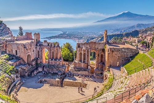 Café da manhã no hotel central em Taormina. Excursão ao Monte Etna, um dos vulcões mais ativos do planeta e o mais alto da Europa. Aprenda sobre a atividade vulcânica e seja maravilhado com os campos de lava antiga e rochas de magma preto que criam a paisagem. Subida até 1.800 metros (se as condições meteorológicas permitirem). Retorno em Taormina e passeio pela cidade localizada sobre uma espetacular elevação do Monte Tauro. Tarde livre. Hospedagem no hotel.