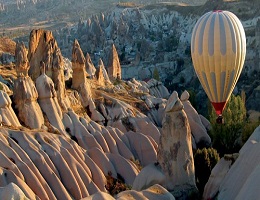 Café da manhã e excursão de dia completo na região da Capadócia, localizada entre três cidades da Turquia: Kirsehir, Nigde, Kayseri. Visitaremos o Vale do Goreme, incrível complexo monástico Bizantino composto por igrejas escavadas na rocha com belíssimos afrescos, os pequenos povoados trogloditas de Uchisar - fortaleza natural; Ortahisar - as chaminés de fadas de Urgup, Chaminés duplicadas e triplicadas da zona; onde veremos também um centro de artesanato das pedras locais e as pedras com concepções tradicionais e imperiais da época. Continuação com Avanos - povoado de ceramistas. Ao final do dia terminaremos a visita em uma cooperativa de tapetes onde se poderá ver como os artesãos tecem os tapetes turcos. Jantar e hospedagem. Sugerimos neste dia aproveitar e fazer um passeio de balão pela região da Capadócia.